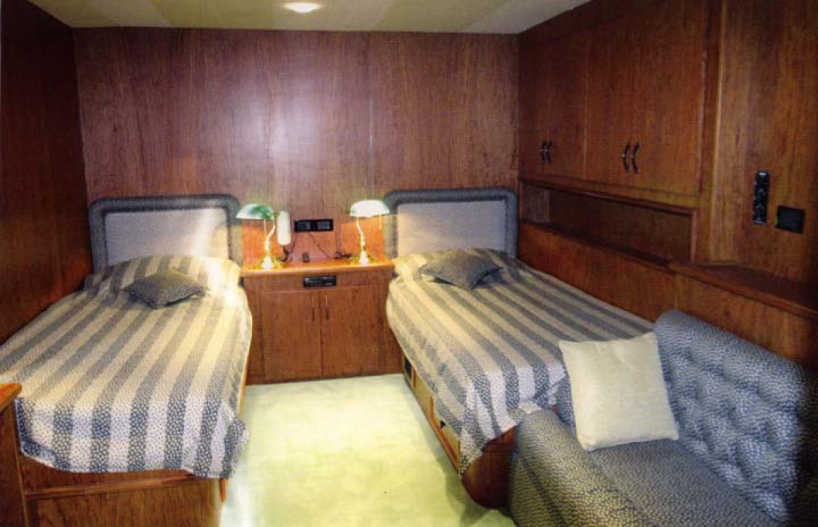 Captain's Cabın With Twin Beds, Ensuite Bunk Cabin Midships, Ensuite 2 Single Cabins In Engine Room Sharing Bathroom