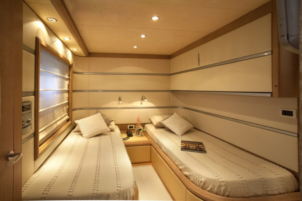 1 x Master Cabin, Midships, Ensuite1 x VIP Cabin, Fwd, Ensuite2 x Triple Cabin, Midships, Ensuite